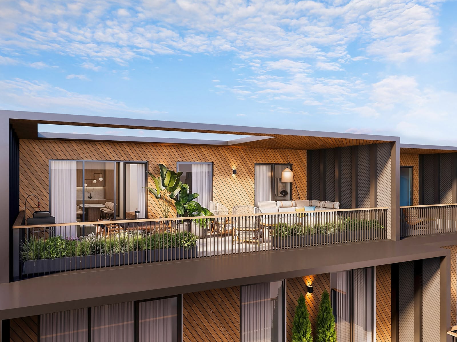 Terrassid ja rõdud: Korteritel on puitlaudisega terrassid või PVC kattega rõdud, millel on valgusti ja tugevvoolu pistik.